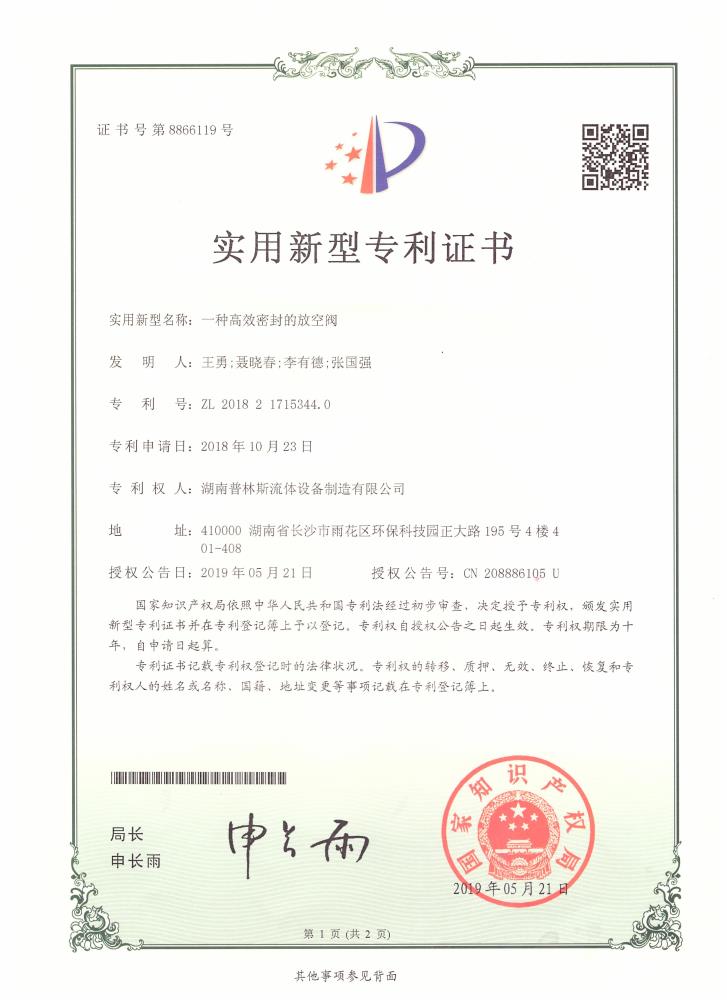 實(shí)用新型專利證書